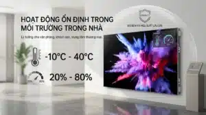 Sản phẩm có khả năng hoạt động ổn định trong điều kiện nhiệt độ từ -10°C đến 40°C và độ ẩm 20% – 80%, phù hợp cho nhiều môi trường sử dụng trong nhà, đảm bảo độ bền và hiệu suất lâu dài.
