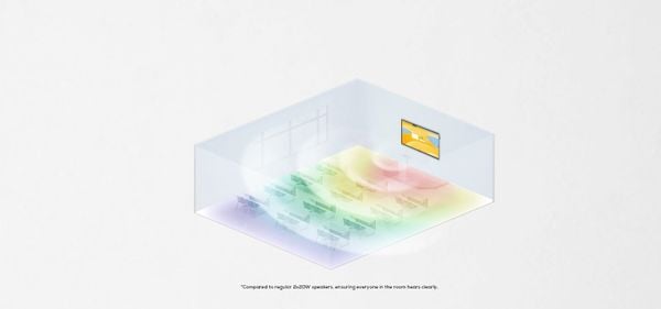 MAXHUB E3 Series tích hợp hệ thống âm thanh Skywave với cấu hình 4 loa (2x12W + 2x25W) và thiết lập kênh 2.2, mang đến trải nghiệm âm thanh rõ nét, sống động và mạnh mẽ, lan tỏa đều khắp phòng học. Âm thanh được thiết kế để phủ sóng xa gấp 4 lần khoảng cách truyền thống, đảm bảo mọi học sinh đều nghe rõ dù ngồi ở bất kỳ vị trí nào.