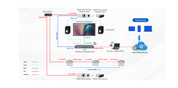 Mỗi micro RM702 có khoảng cách thu âm hiệu quả 3m, và tối đa 6 micro có thể kết nối theo dạng cascading thông qua Power over Ethernet (PoE). Cấu hình này cho phép thu âm phân tán và đảm bảo bao phủ đồng đều trong các phòng họp vừa và lớn, mang lại trải nghiệm âm thanh chất lượng cao, rõ ràng và chuyên nghiệp.