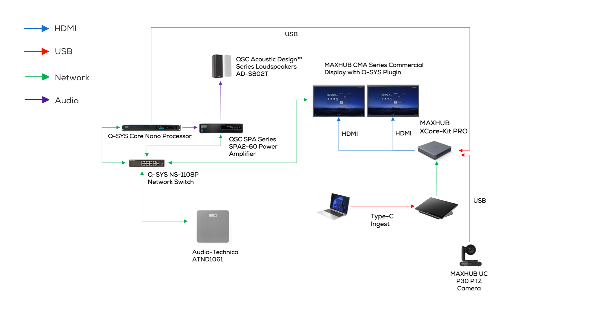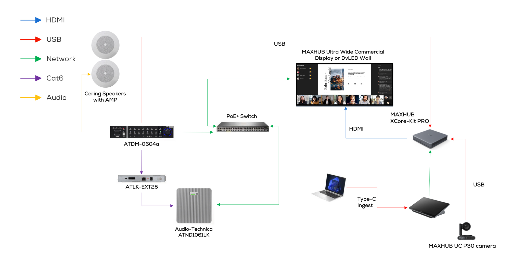 Audio‑Technica mang đến các giải pháp âm thanh chuyên nghiệp hàng đầu, đảm bảo giao tiếp rõ ràng, trong khi MAXHUB cung cấp các thiết bị hiển thị tiên tiến và thiết bị cộng tác UC, giúp nội dung trực quan và cuộc họp của bạn trở nên sống động.