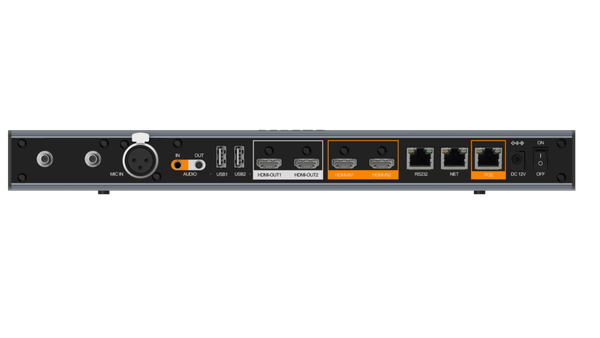 Thiết bị tích hợp ăng-ten Wi-Fi, hỗ trợ xuất hình 4K@60fps ra hai màn hình đồng thời, đảm bảo hiển thị mượt mà và chân thực. Ngoài ra, cổng PoE mở rộng cho phép kết nối nhanh chóng với camera hoặc micro ngoài, giúp triển khai linh hoạt và giữ không gian hội nghị tinh gọn, chuyên nghiệp.