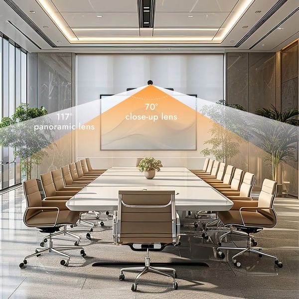 RB20 được trang bị ống kính toàn cảnh với góc nhìn 117°, lý tưởng để bao quát toàn bộ phòng họp. Ống kính cận cảnh có góc nhìn 70° cùng zoom quang học 12x, giúp tập trung vào từng người tham gia một cách chi tiết.