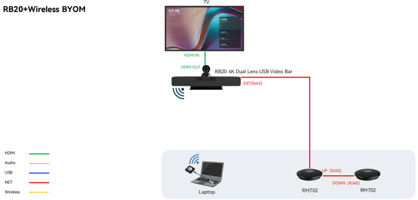 Với công nghệ AI thông minh, RB20 tự động nhận diện người tham gia, điều chỉnh góc quay và bố cục hình ảnh, giúp mọi cuộc họp từ vừa đến lớn trở nên mượt mà và hiệu quả.