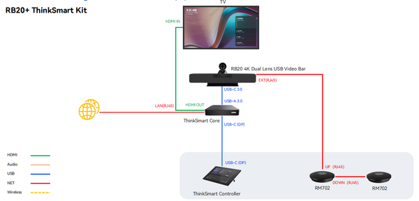 RB20 kết hợp camera 4K toàn cảnh, camera 4K cận cảnh, micro kỹ thuật số và loa toàn dải trong một thiết bị duy nhất.